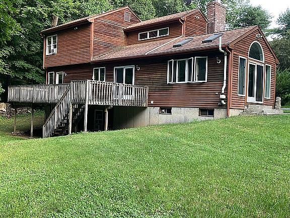 A move-in-ready, contemporary-design house features an open floor plan, raised ceiling, oversized windows, a wood-burning fireplace, and a spacious backyard and deck on 3.12 acres of land. This home has three bedrooms and 2.5 bathrooms. Each bedroom has a spacious walk-in closet. Stainless steel kitchen appliances, washer/dryer, and furniture in listing pictures included. Two-car attached garage with remote-controls. A free-standing exterior shed and two small structures are perfect for storage, pets, or livestock. The private driveway leading to the home includes additional exterior parking for visitors. The land is abundant, ideal for gardening, a swimming pool, or a guest house. A finished walk-out basement would be fitting for an office, in-law suite, or a rental unit. This home has been well-maintained. The furnace provides heat and hot water with a recently installed new motor. Just minutes away from Foxwoods Casino and downtown Mystic. For sale by the owner with prior successful experience and understands the process. Will certainly work with your realtor if needed. Please contact me at (860) 705-2689 - Deborah