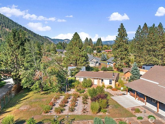 A beautifully cared-for 2 bed, 2 bath home tucked away off Icicle Road in a peaceful mountain setting—an exceptional opportunity you won't want to miss. Pride of ownership shines throughout the property, including a pristine 1,008 sq ft shop showcasing exceptional craftsmanship and multiple versatile outbuildings. The thoughtfully landscaped grounds feature mature plantings including raspberries, blueberries, & grapes—ideal for garden lovers. Extended covered patio perfect for outdoor dining. Cozy wood stove inside home. Generous storage throughout enhances function. Located in a premier recreational haven with endless outdoor adventures just minutes away. A truly rare blend of seclusion and convenience—less than 10 min to Leavenworth.
