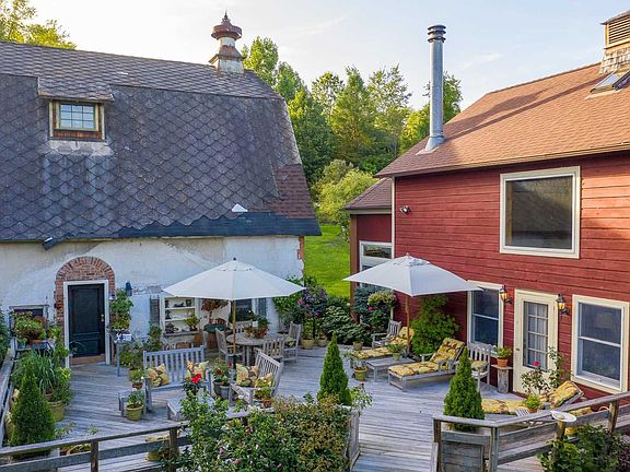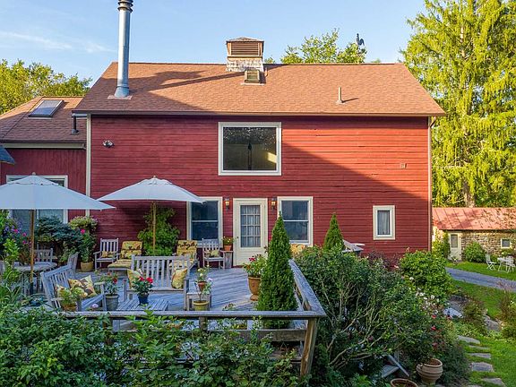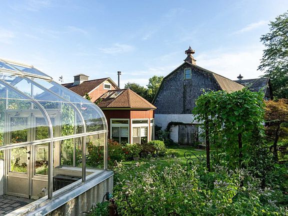 A true country sanctuary...what was once the barn complex of the Dippel Dairy Farm is now a flawless 8-acre hideaway from the noise of the world, where the stylish interior and lushly landscaped outdoor spaces vie with each other in their utopian perfection. Conceived with a designer's eye, and cultivated for its potential, as well as the needs of busy city professionals, specialized craft persons executed the barn-to-sanctuary conversion with maximum attention to detail; systems and infrastructure meet the same standard. The great room is the heart of the home, with original wide-board floors, multiple sitting areas, dining space, wood-burning fireplace, 20-foot ceilings and original beams exposed throughout. Light pours into the spacious country kitchen through a wall of glass and skylights overhead. Beyond its evident beauty, this is a space that cooks will love working in, with butcher-block countertops, a Wolf 6-burner professional range, and plenty of space for dining and gathering. The lofted master bedroom is a haven unto itself and enjoys its own sitting area and bathroom with soaking tub. The barn's lower level includes a pantry/wine room and the most enchanting bedroom with direct outside access to a lushly planted stone patio. The former milk house, a short distance from the house, is curated as an additional sleeping space and is heated for year-round use. The two-story dairy barn includes a workspace with abundant adaptable space on the lower level, while the upper level is an open span with yet more versatile space. The magic continues outdoors, an assemblage of intimate vignettes, mature landscape and indescribable sensuality, with beautiful chimes placed on the wooded paths and choice areas throughout. This is a property to wander through and discover - be it the proper greenhouse with heat, water and potting station for winterizing the property's container gardening; new hot tub and outdoor shower with pergola-shaded sitting area; or the sheer wonder of the gunite pool, set in its own hidden corner of the property with spaces for lounging and dining and graced by a magical koi pond and gently cascading waterfall. When the urge hits to venture away from this haven, attractions abound.