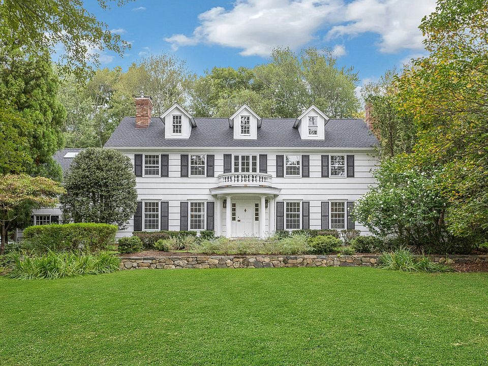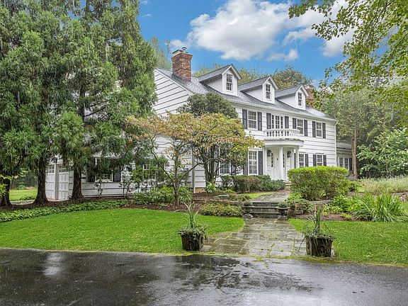 This classic Colonial has character, charm and generous space. The formal Living Room has a fireplace and adjoins the Music Room. The spacious Dining Room has a fireplace bordered by Dutch tiles and features a custom "River" mural. The kitchen has a bright copper exhaust hood, gas stove and opens to the family room with cathedral ceiling, skylights, fireplace and French Doors to the terrace. The private library has ample space for a full selection of books and accesses a 2nd terrace. The spacious Primary bedroom has a fireplace, cedar closets and a custom marble bath with skylights. There are 4 additional bedrooms, a walk up attic and a waterproofed basement with a cushioned floor. The estate like, level property has mature plantings and complete privacy. Make this gracious home and idyllic setting your own! There is a partial house generator
