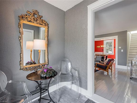 Classic board and batten introduce a sophisticated and private home in the premier English Town area of Port Hope. This Arts & Crafts style home has been beautifully revitalized and modernized for today's most discriminating buyer while preserving the integrity of the outstanding floorplan of the ca. the 1910s. As you enter the front foyer, you'll be captivated by the oversized windows that allow the natural light to radiate through the home and capture the magic of this private property. The main floor features a bonus room used as a main floor master, den or office space. As you ascend the stairs to the second level, you'll find the luxurious primary suite with a private ensuite that features a walk-in shower with restoration hardware fixtures and lab-style stainless steel vanity with a marble top. Two additional guest rooms complete the upper-level living space. Outdoors you'll find several private areas graced with mature trees, perennials, and lush landscaping. The stone terrace that adjoins the dining area offers a beautiful indoor-outdoor connection and makes this an ideal home for intimate garden parties.