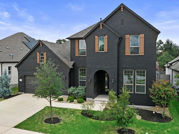 Welcome to 109 Strawberry Lane—a bold, modern residence designed to stand out with its striking black exterior and sleek interior finishes. Set on an interior lot, this home impresses inside and out with a smart, functional floor plan and upscale finishes. Tesla solar panels included as well! The main level features a serene primary suite with a spacious bathroom offering dual vanities and a large shower and closet. A second bedroom on the main floor has its own en suite bath ideal for guests or multigenerational living. A sun-filled home office at the front of the house offers a peaceful space to work or create, and the dedicated media room with built-in cabinetry is perfect for movie nights or entertaining. Enjoy excellent storage under the stairs with a walk-in closet, a generous laundry room with ample space, and an open layout with durable tile that flows effortlessly throughout the first floor. Upstairs, you’ll find a versatile loft area great for play or relaxation, plus two additional bedrooms that share a full bath. With its modern curb appeal, smart design, and thoughtful touches throughout, 109 Strawberry Lane is the perfect blend of style and function. Please note, the property previously experienced mold related to a moisture issue, which was addressed by the builder with repairs and replacement of impacted materials.