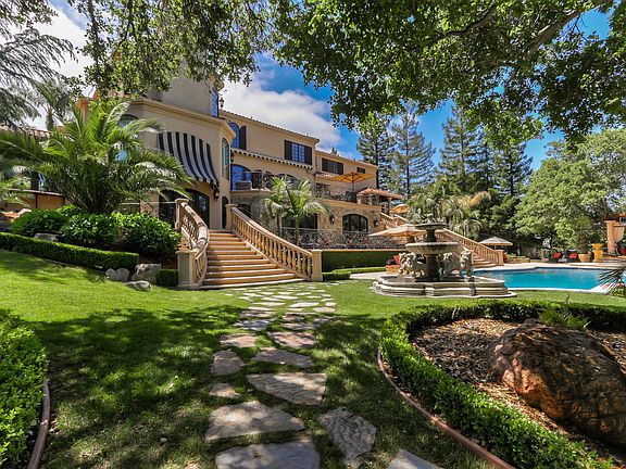 Exquisite classic Italian style describe this work of art surrounded by truly magnificent grounds. Verdant surroundings of the Los Gatos foothills offer a beautiful backdrop for this estate which sits in proximity to the downtown of LG.Unique opportunity to own a newly renovated estate meticulously crafted in its artistic detail w/modern amenities.Landscape architecture & design bring together elements of classic elegance for entertaining w/inviting spaces to relax & luxuriate.Fountains accent the property balanced by a meandering creek.Hm offers architectural features which produce a warm living environment w/all modern electronic, audio, visual, kitchen & bath amenities.The floor plan is well thought out w/kitchen, fm, dn & lv rms, wine cellar,office, laundry & garage all on main level. 5 bds & kids work station are on the upper floor. The lower level is bright & dramatic as it opens out to backyard grounds.This versatile living space includes billiard rm w/bar, gym & bedroom suite.
