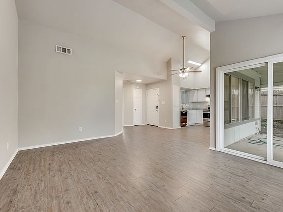 Welcome home to this beautifully updated duplex offering comfort, convenience, and style! Step inside to find an open and airy living space with vaulted ceilings, fresh neutral paint, and large windows that flood the home with natural light. The living room flows seamlessly into the dining area, creating the perfect layout for everyday living and entertaining. The kitchen is bright and functional, featuring granite countertops, plenty of cabinet space, and a electric range for the cooking chef. Both bedrooms are generously sized with ceiling fans and ample closet space, while the bathroom has been refreshed with modern finishes and a sleek vanity. Enjoy relaxing outdoors on the private covered patio overlooking the spacious fenced backyard shaded by mature tree, perfect for gatherings, pets, or simply enjoying the fresh air. Additional highlights include luxury vinyl plank flooring throughout (no carpet!), an attached covered carport, and a convenient location close to shopping, dining, and major highways.