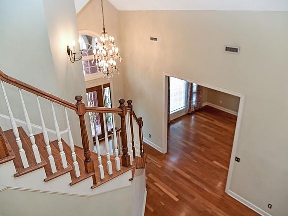 Stately two-story, executive Highlands home on an oversized, corner lot. The lead glass front door entry leads to a two-story foyer and grand room with hardwood floors and a spiraling staircase that leads up to the second floor. Downstairs features a formal dining room, great room with gas-burning fireplace, living room, kitchen, master bedroom & private ensuite, guest bedroom, and guest full bath. The master bathroom offers a corner, jacuzzi tub, separate shower, and walk-in closet. The kitchen features glazed cabinets, a kitchen island, granite countertops, and stainless appliances (refrigerator, stove, microwave, and dishwasher all remain), a walk-in pantry, and a breakfast area. Upstairs are two bedrooms each having walk-in closets and adjoined by a jack-n-jill bath having a dedicated sink and vanity/storage for each side. The living room and great room have floor-to-ceiling views of the back, covered patio and privacy fenced back yard. An additional stone paver area is just off of the covered patio, there is a small storage box in the backyard that will remain and a walk gate that exits to the extended driveway/parking pad.