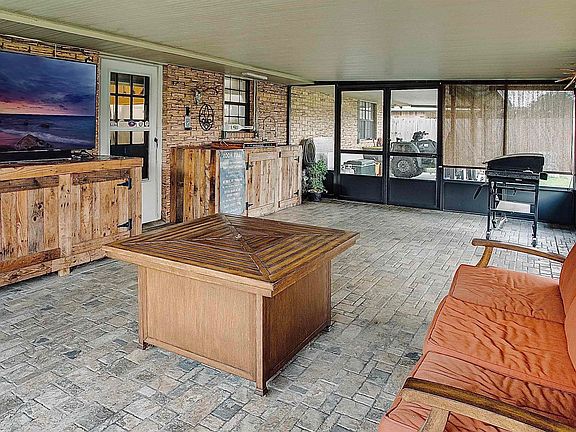 Huge back patioBrick paver flooringNew roofOutdoor kitchen