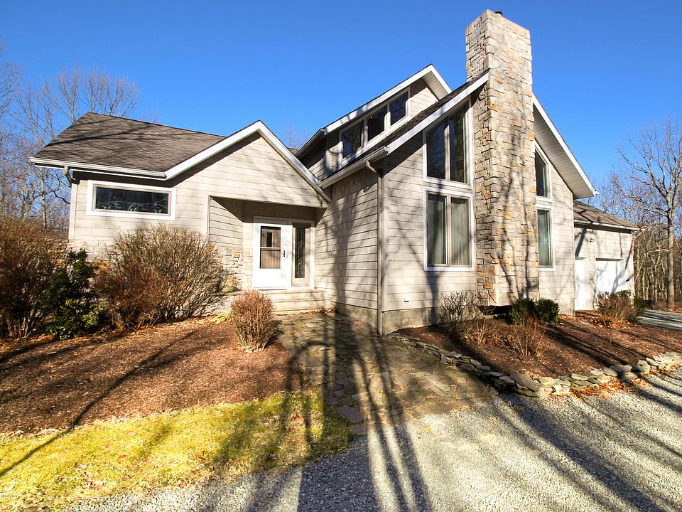 Stunning Contemporary with stone & hardy plank shake siding. Set off the road on 5+ Acres. Open floor plan, lots of windows, hardwood oak flooring. Custom kitchen, propane cook top, granite counter tops, Breakfast Nook, GREAT RM w/ projector, surround sound, propane FP. Master Suite, Walk-in-Shower, sliding door out to deck & hot tub. Private setting, central AC, 1st Floor Laundry/Mudroom. 2 Car Garage. Plus rights to TWIN LAKES. Minutes to Charming Milford Boro.Convenient Location easy access to 84.