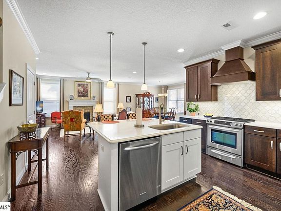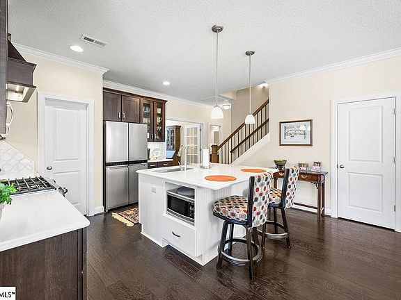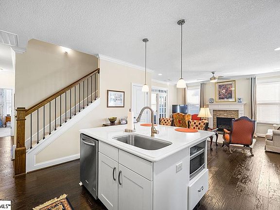 This stunning Craftsman-style home boasts gleaming hardwoods, decorative columns, and a stone gas fireplace in the formal dining and living areas, seamlessly flowing into a chef’s kitchen with quartz countertops, marble backsplash, stainless steel appliances, gas range, a functional island, and a walk-in pantry. The main level includes a versatile second bedroom (currently an office) and Master Suite, while upstairs offers a loft, media room, additional bedroom, and full bath. Explore the .5-mile paved walking path through the community’s 5-acre forest, just steps away. With HOA fees covering lawn maintenance, simplify your lifestyle in this exquisite residence, perfectly located minutes from downtown.