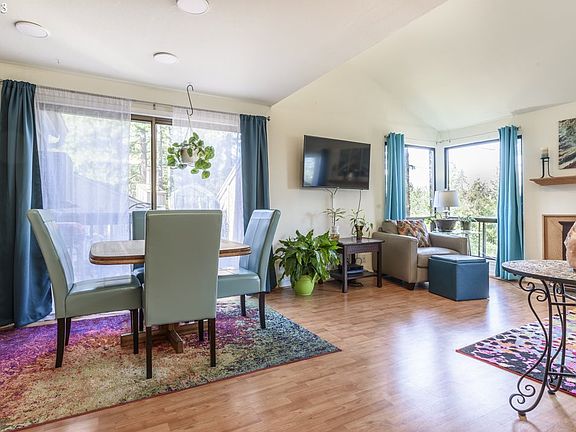 Fantastic single level upper condo with vaulted ceilings & nature views! This home offers a balcony overlooking trees/mountains beyond, remodeled kitchen with granite tile countertops & ample cabinetry plus 2 rolling cupboards, fireplace, ceiling fans and ductless HP. Washer & dryer and electric fireplace stay! HOA dues include exterior maintenance, pool, spa, gym, rec room, basic cable, internet, water, sewer, and trash. Access to Ridgeline hiking trails system. Seller calls it her Eagles Nest!