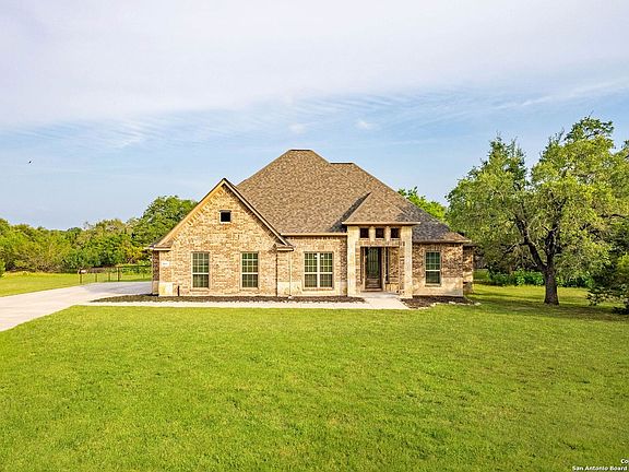 Hill Country living at its finest! This one-owner home sits on a peaceful 1.06-acre cul-de-sac lot in the gated community of Lantana Ridge, offering incredible views, mature trees, and a serene setting just minutes from top-rated schools, everyday conveniences, and Guadalupe River activities. Energy-efficient with a HERS Index Score of 68, this home features recent upgrades including roof shingles, ceiling fans, and more. Inside, you'll find wood and tile floors, a spacious island kitchen with Kent Moore cabinetry and stainless steel appliances, and a bonus room with outdoor access-perfect for a game room, media space, or second office. With a guest suite, radiant barrier decking, water softener, and a huge covered patio, this home truly has it all!
