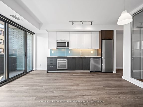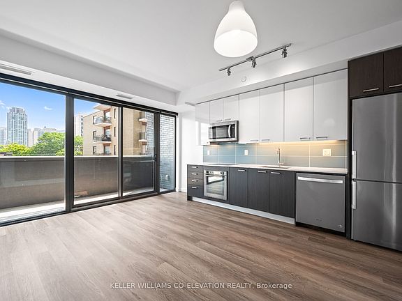 Welcome to 109 Vaughan Rd, a charming boutique building offering modern living in a vibrant location. This bright and airy unit boasts an open-concept layout filled with natural light and includes a walk-out to a private balcony - perfect for relaxing or entertaining. The spacious interior features two generously sized bedrooms with floor-to-ceiling windows that flood the space with sunlight. Enjoy the convenience of in-suite laundry and thoughtful finishes throughout. Residents have access to a rooftop deck with BBQ area, ideal for unwinding, and a 24-hour fitness centre to support your active lifestyle. The professionally designed lobby offers a stylish space to lounge or work remotely. Located just steps from the TTC, subway station, and iconic Casa Loma, this prime location provides easy access to shopping, dining, and all the essentials.
