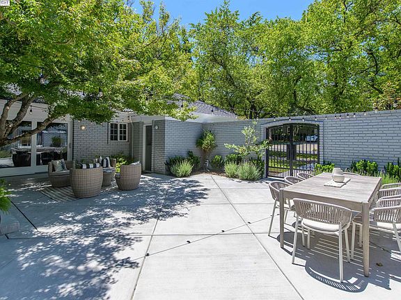 Welcome to this inviting single-story gem located in highly sought-after Westside Alamo, nestled just off the Iron Horse Trail. This stunning home offers an unparalleled combination of functionality, convenience, & updated beauty. Situated on a tree-lined cul-de-sac, & boasting an expansive .44 acre lot, w/ ample space for a future pool & endless possibilities for outdoor enjoyment. Stepping through the iron gates, a private courtyard invites you to indulge in delightful entertainment or simply unwind in a secluded haven. This enchanting space is perfect for hosting larger gatherings or relishing quiet moments of reflection. Upon entering, you'll be greeted by an open floor plan that seamlessly flows from one inviting space to the next. The centerpiece is the large great room, w/plenty of natural light, adjacent to the spacious dining room w/access to the backyard. The kitchen has been recently refreshed w/newly painted cabinets & adorned w/quartz countertops. Its sleek design & thoughtful layout make it a chef's dream, offering both functionality & style. Enjoy the seamless connection to both front courtyard & backyard, making outdoor dining & entertaining a breeze. Gorgeous hardwood floors grace throughout. Newer roof (2 years old). Newer exterior and interior paint. Don't miss