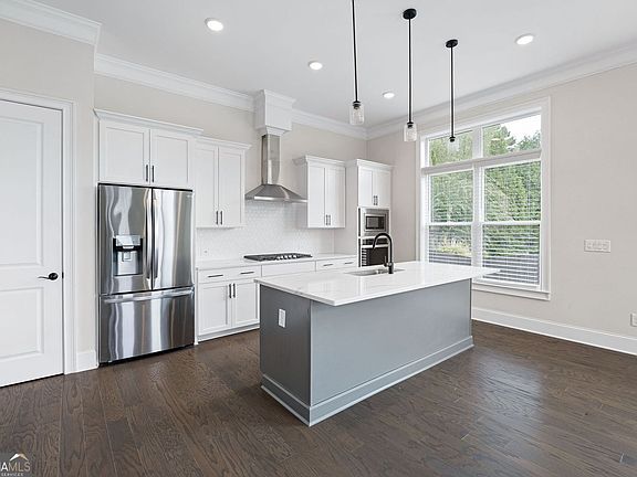 Modern Luxury Meets Everyday Convenience in Sought-After Gated Community Welcome to this stunning 3-bedroom, 2.5-bathroom smart home where modern elegance meets everyday functionality. Located in a desirable gated community, this home sits on one of the largest lots in the neighborhood and is one of the few offering a rare 3-car garage-perfect for storing your golf cart, with Downtown Woodstock just a short golf cart ride away. From the moment you step inside, you'll notice the what makes this home special: 10-foot ceilings and 8-foot doors throughout the home create an expansive, open feel. The entire space is sleek, updated, and designed with a modern aesthetic in mind. The chef's kitchen is the heart of the home, featuring a bright white color palette, gas stove and range, and a large central island that's perfect for entertaining or enjoying casual meals. Upstairs, the layout is both practical and luxurious, with all bedrooms thoughtfully placed near a conveniently located laundry room. Each room continues the theme of clean lines and contemporary finishes, offering both comfort and style. Carpets are being replaced. Outside your backdoor door, enjoy a covered patio and yard maintained by the homeowner's association. The community provides resort-style amenities including a large pool, clubhouse, fully equipped gym, pickleball and bocce courts, and even a dog park-everything you need to enjoy an active, social lifestyle. With its unbeatable location, upscale features, and access to vibrant Downtown Woodstock, this home offers not just a place to live, but a lifestyle to love. Come see it today and experience modern living at its best.