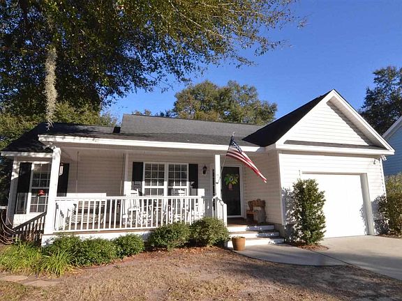 Pawleys Island - Built in 2005, this Mark Rogers Built home rests on a fantastic wooded lot in the Bluffs Community of Pawleys Island. It’s an easy Golf Cart or Bike ride to the beach, home located less than 1 mile from the sand. Enjoy coastal breezes and cool summer nights from this large front porch with the classic low country swing. This home rests on a corner lot with mature trees, spacious parking for boats, golf carts and more. With 3 bedrooms and 2 bathrooms there is ample space for a family or guests. Vaulted ceilings make this home feel very spacious. Family room has wonderful windows and bamboo flooring that extends into the hallway. Eat-in kitchen and dining area are off the living room, very comfortable for entertaining. Close to restaurants, shops and all that Pawleys Island has to offer – Come take a look!