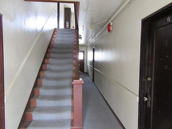 Upstairs studio apartmentLarge kitchenVinyl flooringBeautiful carpeting