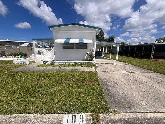 109 Waikiki Dr, Bradenton FL. 34207 Hawaiian Village, 55+ Community (Pet Friendly) This home is on a rented/leased lot. Lower Lot Rent Owner Financing Available This 2BR/1BA comes with a large 23ft by 12ft covered porch The home is located within walking distance of the clubhouse and pool. There is a shaded back yard area and no home directly behind this one. There is a new carport and new covered porch. There is laminate flooring throughout the main home section and ceramic tile in the covered porch. There are new mini blinds and fresh paint throughput. All of the overhead light fixtures are updated. Fresh exterior paint. The home is cooled with central a/c. The home has a carport and a storage shed. The laundry hookups are in the shed. The refrigerator and oven/stove are included. Lot rent is ~$795 and includes trash, lawn, pool, clubhouse, and associated community activities. (Final lot rent TBD Hawaiian Village Park management) Hawaiian Village is conveniently located in Bradenton within walking distance to services and bus routes. Ride the bus to the beach! Florida MH Sales, LLC cannot guarantee or warrant the accuracy of this information, measurements, or condition of any property. Measurements are approximate. All homes are sold as is and personal or professional inspection is encouraged. Lot rent is set by the community and is subject to change. All buyers must be approved by the community before closing on a negotiated sale.