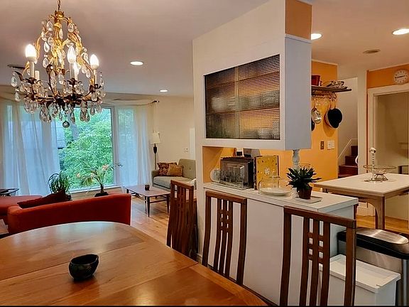 Beautiful 3 BR, 2 bath, split-level home, with lots of natural sunlight, that is located on a neighborly, tree-lined street in South Brookline close to Baker School. 3 nice-sized bedrooms with good closet space, bathroom with luxury air-jetted tub and waterfall shower, sunny insulated three-season porch, garden-level finished basement with wet bar and backyard access, plus one bonus room (office/playroom), an open-concept dining/living room and eat-in kitchen. The dining room, kitchen and side porch overlook a stone-tiled patio, outdoor fireplace, and neat yard with a small wooded hill beyond, creating a peaceful oasis for lounging and gathering. Central A/C; gas heat; driveway parking; large-capacity washer/dryer, air-jetted bathtub/waterfall shower. Located on a quiet tree-lined street, yet walking distance to Starbucks, restaurants and convenience stores. Close to "The Street", "The Shops at Chestnut Hill" and "The Square". Approximately 2 miles to Longwood Medical Area and 5 miles to Downtown Boston. One of the best locations in Brookline, not to mention all the shops and restaurants in West Roxbury and the Commuter Rail. YouTube walkthrough video available upon request!