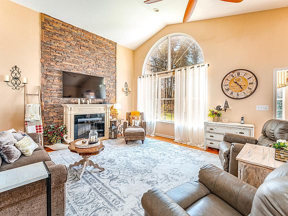Impeccably maintained and desirable Evergreen model with spectacular location overlooking tranquil Devonshire Pond. Located in beautiful Devonshire Village of the Four Seasons Active Adult community in Historic Smithville, this 3br/2ba home boasts charming hardwood floors, a warm and inviting sunroom overlooking the pond, , bay windows, walk up attic storage, and wonderful living space with fireplace. The newer gourmet kitchen has a window seat and granite counter tops providing additional seating. It has it all for the chef in the family. The expansive master-suite has walk-in closet with custom systems, large master bath has double vanity, jacuzzi tub, and separate shower. Additionally, there is an expansive garage with auto door opener. Last, let's not forget the back patio that serves as a tranquil place for a relaxing day overlooking the pond or for entertaining. There are miles of walking/biking trails throughout this community and its a short distance to the fantastic Clubhouse that provides opportunities for gatherings, both indoor and outdoor pools, indoor hot tub, pickleball, tennis, bocce ball, shuffleboard courts, putting green and other amenities. This is a must see home and community. The monthly fee includes lawn maintenance, sprinkler service, snow removal, trash and the great community amenities. There is also a solar lease in place helping reduce your utility fees.