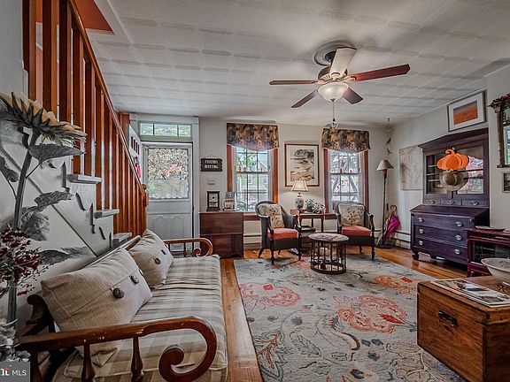 Welcome to 109 Washington Street, a charming residence in historic Delaware City, DE. This home, dating from the town’s early years, offers a blend of vintage character and modern comfort, with 1,300 square feet of well designed living space over three levels. Step inside and be greeted by the warmth of hardwood floors that flow seamlessly throughout the main living areas. The formal dining room provides entertaining space as well as a place to enjoy intimate meals. The well-appointed kitchen is both functional and might inspire culinary creations. It is also an eat-in area for less formal occasions. Off the kitchen you’ll find a full bath and across the hall, a sunlit laundry/mud room. On the second floor there are two comfortable bedrooms offering space for relaxation and a personal retreat along with a second full bathroom. At the end of the hall is a winder stair to a large bonus room, suitable for a third bedroom or home office. It is currently used as the owner’s music studio. Outdoors, the home sits on a purposefully landscaped lot that features many perennials, flowering shrubs and shade trees. A small rear patio offers a peaceful spot to enjoy breezes under the shade of the weeping willow. The fenced yard provides both privacy and security for pets while the spacious front porch allows you to watch the world go by. The paved driveway offers ease of access, and parking for up to three cars off the curbed street. The Delaware River waterfront and town’s Battery Park is a mere block and a half away. The main shopping district is a short stroll away along with the many activities of a charming community with its rich history and holiday events. Life at 109 Washington Street is awaiting new owners to call it home and enjoy it for years to come.