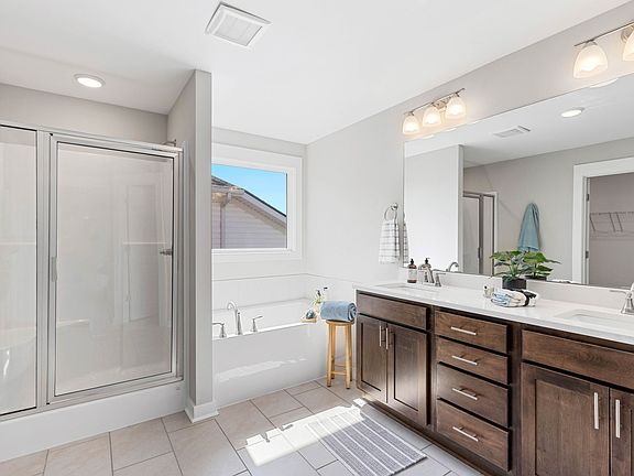 Former model home in the desirable Westfield community! This beautiful all-brick, 2,155 sq ft home features 3 bedrooms, 2.5 baths, and stylish design across two levels. The main living area boasts a cozy gas fireplace and opens to a bright kitchen with pantry, electric range, microwave, and dishwasher. Upstairs, the spacious primary suite offers a large walk-in closet and separate tub and shower. Two additional bedrooms and a full bath complete the second floor. Enjoy features like dual-zone heating/cooling, ceiling fans, attached 2-car front-entry garage, and a private back patio. Situated on a low-maintenance 0.12-acre lot with convenient access to shopping, dining, and Vietnam Veterans Pkwy. Built in 2021 and designed with thoughtful upgrades throughout.