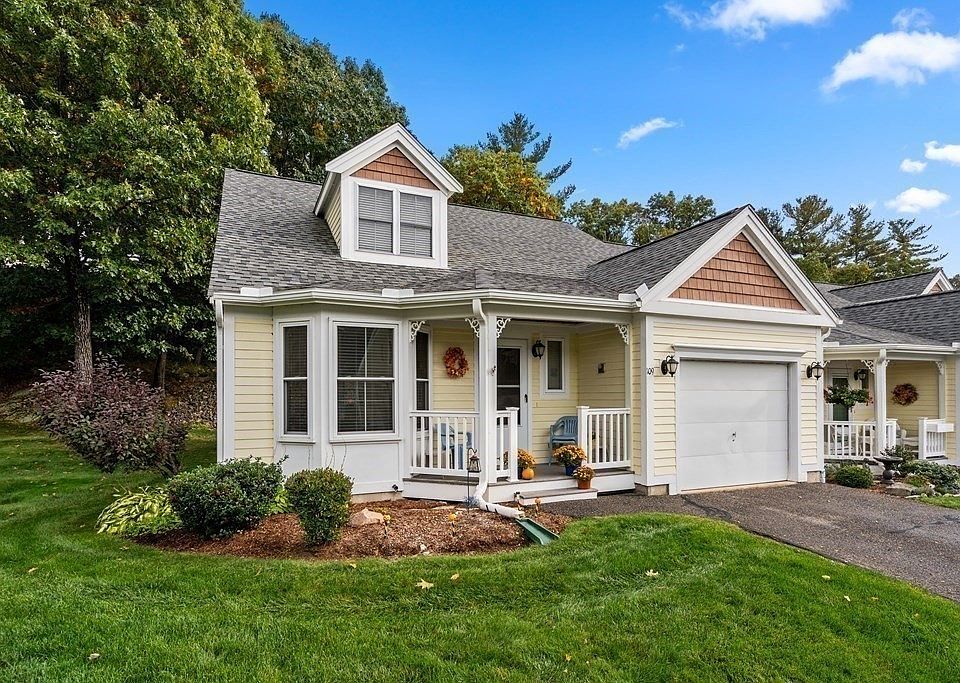 Sunlit and airy corner unit townhouse in The Villages at Marlborough East, a 55+ community. Offering a spacious floor plan highlighted by a cathedral living room with gas fireplace. The first level also has a separate dining room, primary bedroom and laundry. The second level has an open loft that could be used as an office along with a second bedroom and full bath. Improvements include recently replaced heating and cooling systems and year old roof. Lots of green space outside the sliding patio door with a view looking out to nature. This beautiful unit has a one car garage and is Conveniently located with shopping and restaurants nearby.