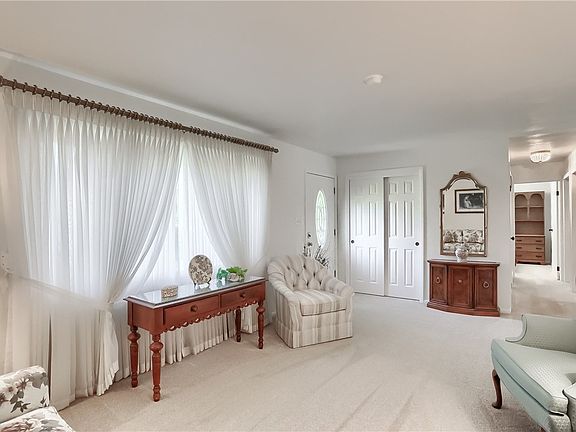 Situated on a level lot, this single-story home boasts a generous back deck that's perfect for hosting gatherings. inside, you'll be greeted by a formal living room, an updated kitchen furnished with granite countertops a stylish backsplash and solid wood cabinetry. The spacious great room combines a dining section & a brick fireplace flanked by built-in shelves. With 3br & two full baths, one of which has undergone modern remodeling the other offers a walk in shower for easy access the home is accommodating for all your needs. The full basement offers various areas including a built-in bar, a versatile room, a laundry section & a workspace. Bilco doors, cement driveway, landscaping and brand new A/C are also part of this appealing package. Hardwood Floors are hiding underneath some of the carpeted rooms. Close and Convenient to all.