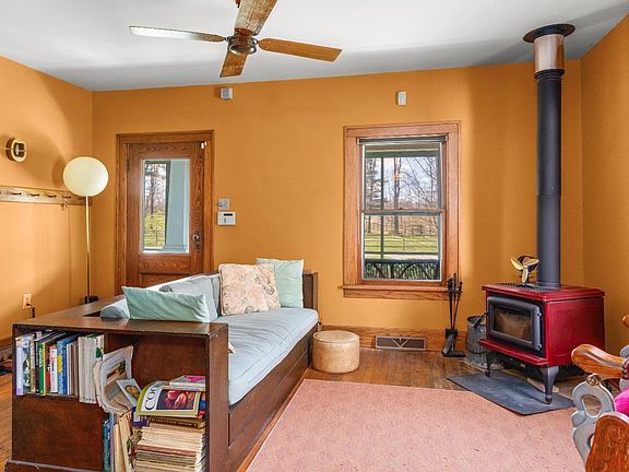 1928 Sears Style Bungalow on 4.2 Acres with Creek FrontageLocated on a tranquil dead-end road, this home offers a picturesque retreat just 10-minutes from the vibrant city of Hudson. With 3 bedrooms, 1 bath, hardwood floors, built-ins, and a wood stove, this home exudes vintage charm. A delightful screened porch invites you to relax and unwind, while the two-car garage presents an inspiring space perfect for artists or hobbyists alike. Outside, enjoy over 4 acres with a fenced garden, mature landscaping, a beautiful open meadow, and frontage on Claverack Creek.