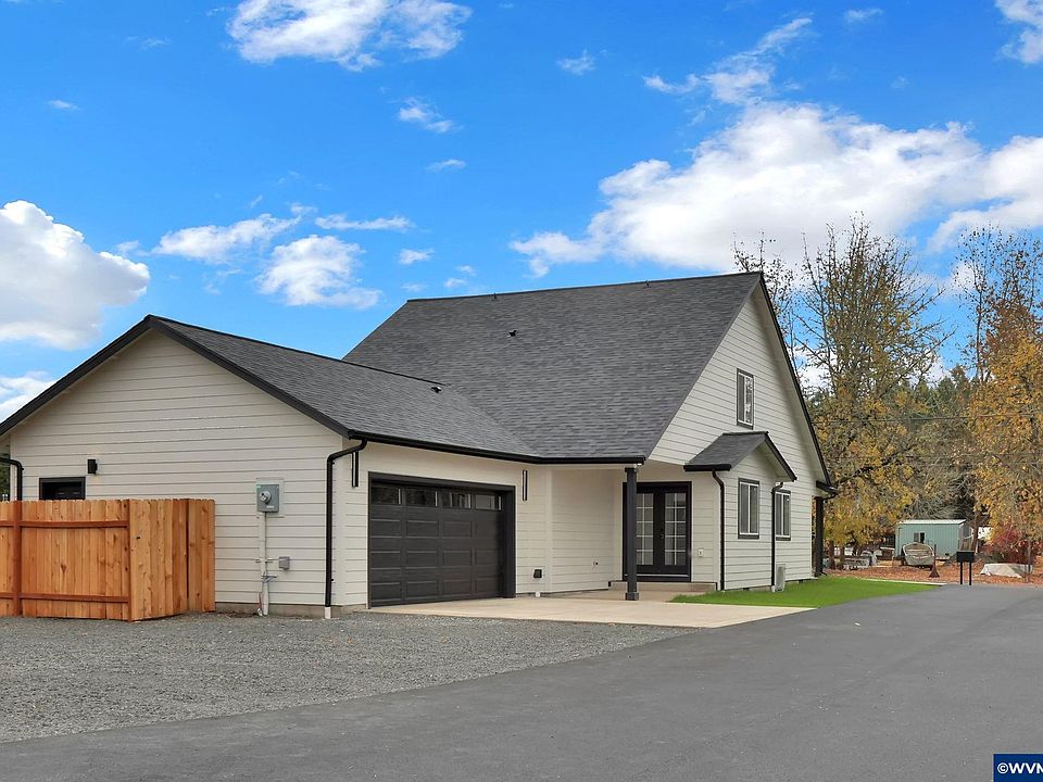 NEW CONSTRUCTION 4-bedroom, 2.5-bath home in Sweet Home with modern finishes throughout. Stylish exterior lighting, and a welcoming front door with Ring camera and keypad entry. LVP flooring, a spacious kitchen with stone countertops, and floating vanities with custom tile showers. The open stairway adds a grand touch, while the fenced yard offers plenty of space plus RV parking with electric, solar-ready, and EV hookups. Includes a well house (buyer to sign shared well agreement). Whole house ventilation.
