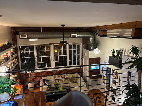 Exposed brick wallsRooftop deckSolid hardwood floorsOpen living spaceTwo-story industrial loftOriginal beam details