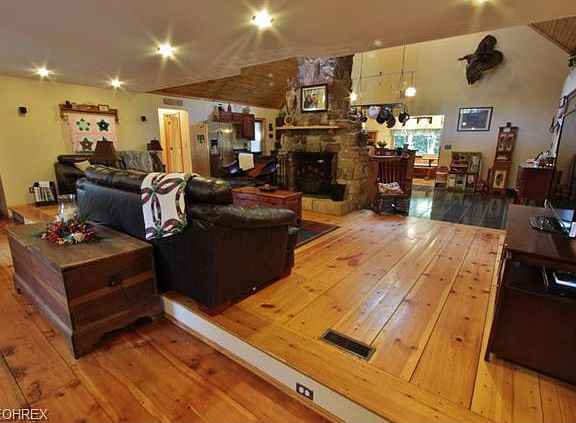 Built in 2000, this 3 bedroom home has 3 bathrooms. Custom walnut and cherry cabinets with vaulted wood ceilings. Stone fireplace, over looking great room. Finished basement with full kitchen. 48 X 48 garage.