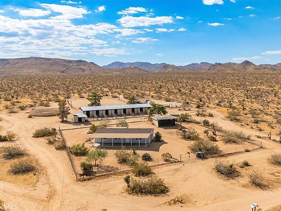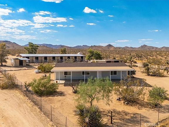 Welcome to your ideal horse property! This stunning 5-acre estate is tailor-made for equestrian enthusiasts and outdoor adventurers alike. The property features a spacious 8-stall horse barn, each stall complete with runs, offering ample space for your horses to stretch and roam. For your training and riding needs, there’s a well-appointed training ring and a versatile arena, perfect for both practice and pleasure. The estate includes a charming 2-bedroom, 2-bath mobile home. Inside, you’ll find a new furnace, fresh new paint, ceiling fans, and modern amenities such as a dishwasher and fridge. Large windows provide incredible desert views, and the east-facing porch is ideal for enjoying those stunning desert sunrises. This parcel backs up to BLM land and the area has plenty of riding trails. This property is a short drive from Joshua Tree National Park. Big Bear, and Palm Springs are not too far, making it a gateway to both serene nature and vibrant cultural experiences. This property combines functionality with comfort, offering the perfect retreat for you and your horses. SELLER WILL CARRY at 5% interest with 15% down!! Discover your new equestrian paradise today!