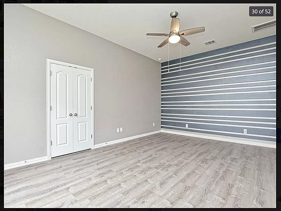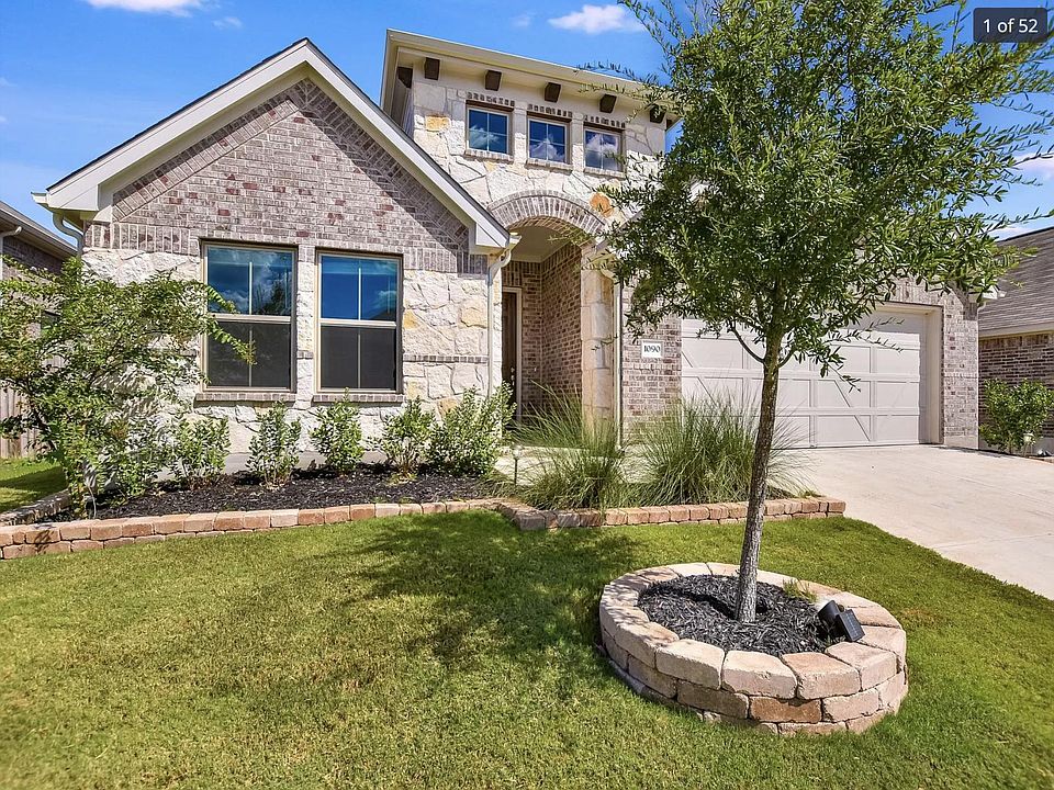 Well-taken care of 2200 sq. foot single story 4 bedroom, 3 full bathroom with a bonus room. Custom cabinets, backsplash, and granite counter tops. Custom built-in book shelves in the front room. Glass french doors on bonus room. The only carpet is in 2 bedrooms and master closet- Vinyl planks elsewhere. Cordless Blinds, high ceilings and ceiling fans throughout house. Lovely fully fenced-in back yard with 2 well established Red Oaks. Washer/ Dryer, Fridge and water softener included. Large closets in each room. In coveted Sunfield with elementary school and lazy river within walking distance! Small dogs up to 45 pounds with all current vaccinations and no aggression history. Only 3 vehicles allowed. No utilities included. Preferred 12 month lease. Email for detailed list of rental criteria.