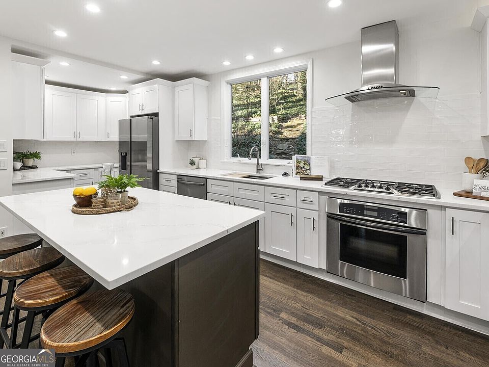 Welcome home to this serene and updated private retreat nestled on a one-acre lot close to Emory University & Emory Hospital, the CDC, Mason Mill Park, Toco Hills and Decatur dining and attractions. The two-story foyer greets you with lots of natural light and inside the home you find updated light fixtures, hardwood floors and a front sunroom ideal for an office, plant sanctuary or reading nook. The home flows perfectly from the living room to the brand-new chef's kitchen with high-end appliances, quartz countertops and plenty of cabinetry and countertop space. The island makes the kitchen warm and inviting for hosting friends and family. The separate dining room and eat-in kitchen space gives you the flexibility to entertain in multiple spaces. Off the kitchen is an open sitting room with floor to ceiling windows and beautiful views of your private backyard. There is a guest room, full bathroom, and laundry on the main level as well as a separate office space with beautiful built-ins, making this easy one-level living if desired. Off the garage is a private staircase that leads you upstairs to a huge bonus space with vaulted ceilings, private bathroom, and laundry that could be the perfect in-law, au pair or teen suite. The primary staircase leads you upstairs to two secondary bedrooms that share an updated hall bath. The primary suite has vaulted ceilings, oversized walk-in closet and a brand-new spa like bathroom with a walk-in shower, soaking tub, double vanity with additional storage and a separate water closet. There are beautiful new hardwood floors throughout the home, fresh paint, new light fixtures, and renovated bathrooms. Everything has been touched and is move-in ready.