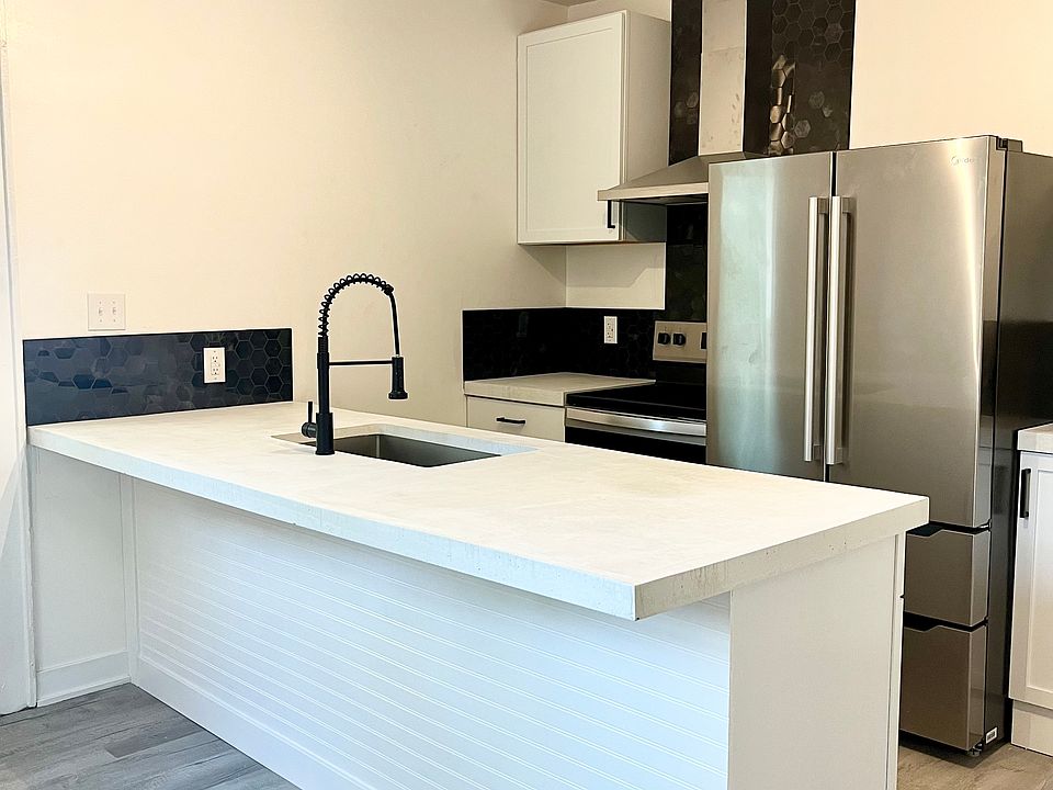 Be the first to rent this beautifully remodeled 4-bedroom home with an additional pass-through room and 1 full bath. The recently finished 3rd floor features modular heating/cooling and includes a massive bonus room. Enjoy a brand-new kitchen with concrete countertops, stainless steel appliances, and new cabinetry, plus a fully updated bathroom with modern tile. Luxury vinyl flooring on the first floor and hardwood throughout the rest of the home. In-unit washer and dryer. This will go quick!