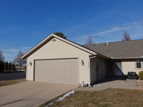 Convenient, Comfortable, and Carefree Living being offered with this well maintained 2 bedroom, 2 bath home featuring main level living with no steps. Covered entry porch provides shelter to arriving guests from the elements. Interior entry features tile flooring and coat closet open to living room. Living room adjacent to the formal dining area offers warm and inviting gas fireplace plus nice space for entertaining friends and family. The informal dining area is located between the kitchen and formal dining granting easy patio access through the glass sliders perfect for outdoor enjoyment. Kitchen features ample cupboards/cabinets, counter space, breakfast bar, appliances, pantry, laundry closet, plus attached garage access. Convenient hall bathroom, guest bedroom, and bedroom suite complete with private bathroom and walk-in closet. Home is located in a 55+ retirement community and situated close to shopping, restaurants, recreation, and hospital. Low maintenance vinyl exterior, 2-car attached finished garage with additional storage, and concrete drive. Call today to view this wonderful home.