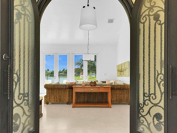 Island barHeated poolWaterfall fountainStunning long lake viewMediterranean-style two-story villaFire pitStainless steel appliances