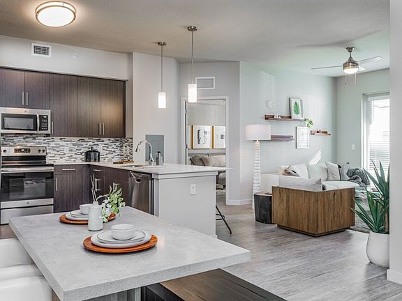 - Exterior features: , 24-Hour Emergency Maintenance, 9.5ft. Ceilings, Cabanas, Central Heating/ac, Conference Room, Designer Light Fixtures, Frameless Walk-In Showers, Fully-Equipped Kitchens, Garden, Hardwood-Inspired Flooring Throughout, Juice Bar & Market, Large Undermount Kitchen Sinks, Mini Bowling, Natural Light In Every Suite, On-Site Management, Package Receiving, Partially Shaded Rooftop Terrace W/ Kitchen, Patios/balconies W/ Storage, Pet Park, Pet Washing Station, Pool Table, Quartz Countertops In Kitchen & Baths, Rock Climbing Wall, Shuffle Board, Stainless Steel Appliances, Sun Shelves, Surface parking; attached garage: $250/month; detached garage: $225/month, TV Lounge, Virtual Golf Simulator, Virtual Training/yoga Room