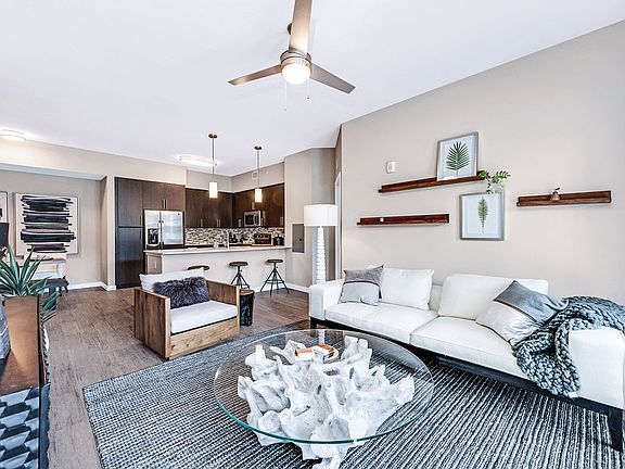 - Exterior features: , * Features may vary by suite, 9-1/2 ft. ceilings, Additional attached storage available, Availability 24 Hours, Conference Room, Designer light fixtures, Electric car charging stations, Garden, Hardwood-inspired flooring throughout, Large undermount kitchen sinks, Located just 13 miles from area beaches, Mini bowling, On-Site Management, Online system for resident services, Owner-managed, Package Receiving, Patios/balconies with storage, Pet Park, Pet Washing Station, Planned community activities, Preferred Employer Program, Quartz countertops in kitchens and baths, RentPlus Resident Financial Services, Rock Climbing Wall, Significant natural light in every suite, Stainless steel appliance packages, TV Lounge, Valet waste services, Virtual golf simulator with putting green