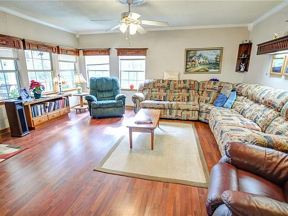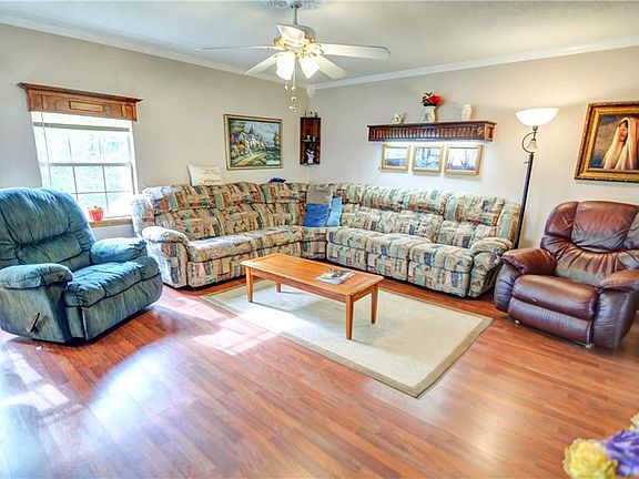 This home on 5.01 acres features a large covered patio that overlooks a beautiful back yard and the heavily wooded back portion of the lot. There is also a Florida room that is NOT included in the square footage. Wood shop is 16 x 44 and is heated and cooled. Two storage buildings also with the home, one of them is climate controlled. AC condenser in the home is only 2 years old. Come see the nicely landscaped yard on this corner lot! (Will NOT finance FHA)