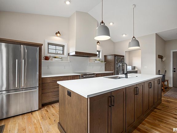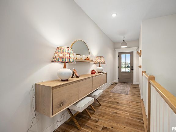 Just Listed! Modern 4 Bed / 2 Bath Ranch in Desirable Trail Crossing – Dunlap Schools This stunning 2023-built ranch in Trail Crossing sets itself apart from the rest with designer finishes and an open, sophisticated layout. Step inside to a magazine-worthy kitchen featuring custom white quartz countertops that flow seamlessly into a full backsplash with integrated quartz shelving. Stainless steel Fisher & Paykel appliances include double refrigerators, double-drawer dishwasher, and induction cooktop. The oversized quartz island anchors the space—perfect for entertaining—illuminated by timeless Bell Mohd pendant lights. Enjoy the added walk-in pantry with full quartz counters and cabinetry that extend your kitchen workspace in style. The open floor plan boasts vaulted ceilings, distressed oak stack solid wood floors, and built-in oak shelving framing a floor-to-ceiling rustic black brick fireplace that adds warmth and charm.Step through the tempered glass double doors to the sun-filled four-season room, ideal as a sitting area, den, or creative studio. A screened porch opens to a concrete patio, offering the perfect spot to relax and enjoy nature. The primary suite impresses with a spa-like bath—double vanities, curbless floor-to-ceiling tiled shower, and quartz counters with elegant fixtures—plus a deep walk-in closet for ample storage. The 4th bedroom is in the LL with lots of opportunity to add more finished space. Make your appt today before this home is gone!