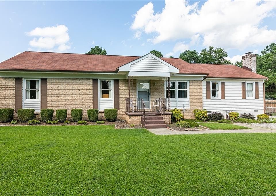 Great Price on a Meticulous Ranch with Huge Fenced yard! This low-maintenance brick ranch is freshly painted inside. The oversized family room with one of a kind custom painted brick fireplace has plenty of space for family and friends. The cozy living room makes for a well-lit, yet intimate setting for conversation. The kitchen is huge with lots of storage and a dining area. The spacious master bedroom includes a private bathroom! Outside, you'll love the huge, fenced-in yard with patio and THREE storage sheds, including one with 220 amp electricity. Minutes from Lake Chesdin & Pocahontas State Park! Newer roof with 30 year warranty. Sold "as-is"