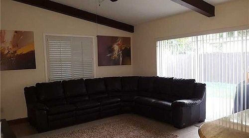 Beautiful 3BD/2BA, 2 car garage, corner lot home with tile and laminate floors, vaulted wood beam ceilings, ceiling fans, window treatment, fenced yard with covered porch, accordion shutters, exterior lighting, granite kitchen counter tops, breakfast island, stainless steel appliances. Washer/dryer in garage. No pets allowed. Close to highways, shopping, dining, schools. Only A+ tenants. 1st month, 2 months security. No assoc. fees. Move in 1/1/2017.Call listing agent to see property. Pictures and Description Courtesy Of: Best American Realty Corp
