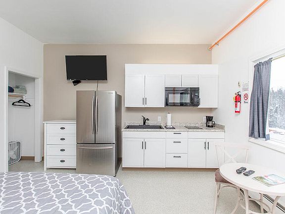 These South Anchorage Studio Apartments are located in the lower "Hillside" neighborhood close to the Alaska Zoo. This property offers 4 studio apartments ranging in sizes from 286 to 396 sq. feet. All of the studio apartments have full baths and full kitchens, queen beds, ceiling fans, 43 4K flat screen TV, cable, wireless internet and access to a shared laundry room. Free off street parking! This location is just 15 minutes from downtown and the airport. Chugach State Park trails, restaurants and shopping are just a short drive away. This is a great location for those with a car that want to be close to all the amenities, but not in the commotion of downtown. VIRTUAL TOUR SEPTEMBER 1 MOVE-IN SPECIALS 1 months $1500/mo* 2-3 months $1300/mo* 4-7 months $1200/mo* 8-9 months $1100/mo * OCTOBER 1 AND NOVEMBER 1 units also available. Contact us with needs and for rate information. Rates for partial Chugach view unit. For a unit with, full Chugach view, unit with double oven or the Mt. Denali and City view Suite, please inquire for rates. LARGER UNITS -- Call PET FRIENDLY -- Call for additional locations. This property is not pet friendly. OTHER LOCATIONS -- Need something different, please give us a call. LONGER TERM RATES -- Call We look forward to working with you. Jeff Huffman Walker Properties Phase II LLC Furnished with all utilities, internet and cable included. Staying short term? Call for lower security deposit requirements.