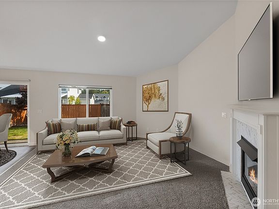 Welcome to Willow Brook, one of Bonney Lake’s most sought-after neighborhoods! This adorable rambler is move-in ready with a brand-new roof, fresh interior paint, new trim, carpet, & stylish modern hardware throughout. The home offers a bright open kitchen with plenty of counter space and all appliances included. Enjoy vaulted ceilings in the family room, a cozy tiled gas fireplace, and a large primary suite with a walk-in closet and full bath. The level, fully fenced backyard features a patio, sprinklers, and mature landscaping—perfect for relaxing or entertaining. Stay comfortable year-round with central A/C. Surrounded by walking trails and close to commuter routes & shopping, this home blends convenience, charm, & comfort. Welcome home!