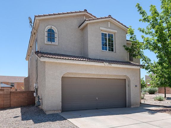 Nicely maintained and move-in ready home in beautiful and convenient Los Suenos neighborhood. This floorpan is open, great for entertaining, and flexible with an extra living space or rec room. Enter and be welcomed by a flood of natural light, soaring ceilings, and gorgeous staircase. The primary is oversized with a large en-suite and walk-in closet. The other 2 bedrooms are separate from the master offering privacy. Home has no carpet, newer laminate, and 2 new vanities. The backyard is ready for your summer BBQs with low maintenance synthetic turf, a built-in gas fire pit, Gazebo, and privacy. Near walking trails, restaurants, parks, schools!Solar is a transferable Power Purchase Agreement, Seller's PNM bills are <$9/month & Solar bills range from $55/month to $115. No equip lease.