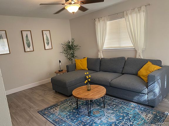Prime location less than 10 minutes to USAA, Fiesta Texas, La Cantera Mall & The Rim. Beautiful move in ready 3Br 1Ba with study/bonus room that sits on a .22 acre lot at the end of a small cul de sac. Open-floor plan. The Island Kitchen is updated with new stainless steel appliances, including the dishwasher, gas stove and oven, new pendant lighting. The bathroom was also renovated with a new tile floor & shower walls, bathtub, lights, and vanity. Huge back yard that would be great for entertaining with a storage shed. Has been a successful Airbnb and owner would love to sell it as an Airbnb.