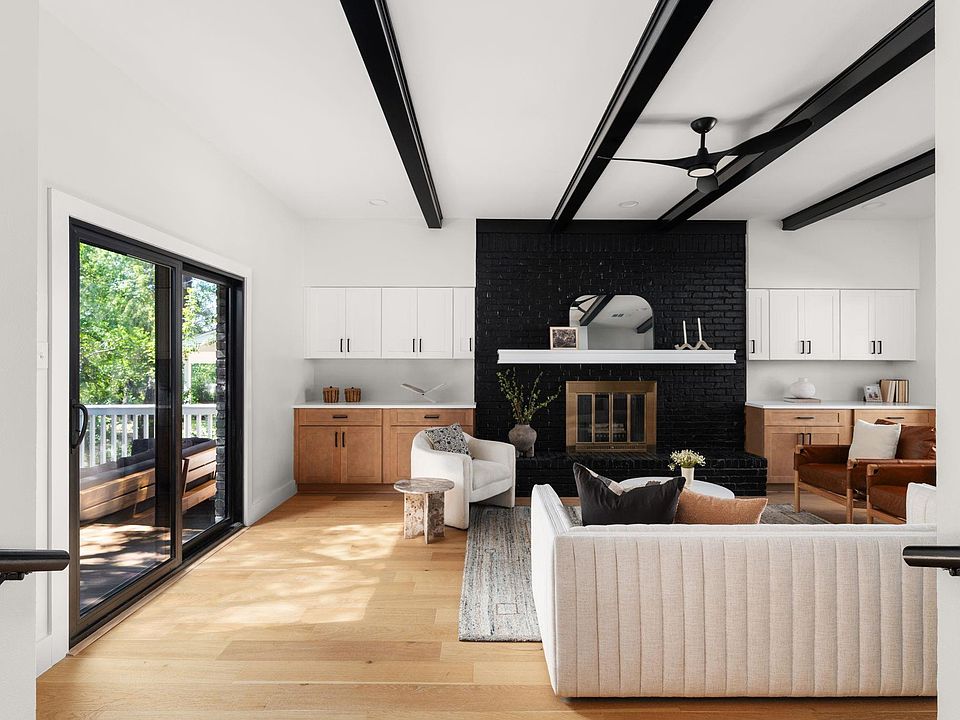 Black brick fireplaceModern eloquencePrivate yardNew appliancesBuilt-in deskAbundant natural lightCustom built-ins