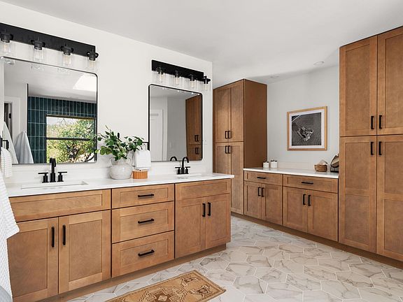 Fully restored 4-bedroom home that blends timeless character with modern eloquence. Designer finishes and abundant natural light carry throughout. With two living rooms, two dining spaces, and an oversized true interior laundry room, 10905 Chateau Hill boasts a versatile floorplan that suits all types of lifestyles. The heart of the home is a chef’s kitchen with two-tone custom white oak and shaker cabinetry, quartz counters, and premium appliances including a drawer microwave and coffee bar. A sunny breakfast nook with a built-in desk opens directly to the back deck and patio. Entertain with ease across two living areas: a formal living/dining with bold wainscoting, plus an oversized family room with a black brick fireplace, brass accents, and custom built-ins. Upstairs, the primary suite offers treetop views, dual walk-in closets, and a spa-like bath with a freestanding soaking tub, walk-in shower with dual shower heads, and expansive double vanity. Three secondary bedrooms and two updated baths complete the layout. Everyday convenience is elevated by the spacious interior laundry room. Outside, enjoy a private yard with mature trees and an oversized deck. Families will appreciate the premier Round Rock ISD zoning, with direct access to Kathy Caraway Elementary, Canyon Vista Middle, and award-winning Westwood High. Additional highlights include an oversized two-car garage with golf cart space, nearby golf courses, greenbelts, and parks —all with convenient access to 183 and Lakeline Mall. Schedule your private showing today and experience the rare versatility and modern design of Chateau Hill for yourself. Major 2025 Updates: 30-year architectural roof, new water heaters, full kitchen & bath remodels, full interior/exterior paint, new wide-plank hardwoods, new interior and exterior doors, new electrical and plumbing fixtures, new designer tile and new appliances.