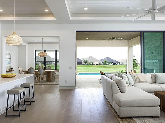 Now priced over $100,000 less than what the sellers paid, and under appraised value! Beautiful custom home on a serene golf course lot in Robson Ranch. The sellers were transferred before they could move in. This gorgeous Avalon plan, single story home, enjoys almost $400,000 in upgrades, features a coastal design palette and is the perfect option for those wanting a new golf course home in Robson Ranch without waiting months for a new home to be built. This home includes the original builder's warranty & is one of the last premier golf course lots available. Upgrades include 8” wide planked white oak wood floors, custom cabinetry, tongue & groove ceilings in the great room, kitchen & primary bedroom, upgraded appliance package with built-in refrigerator, extended patio with fireplace overlooking the golf course and stone accents. Entering through a paneled foyer, the main living area opens to the gourmet kitchen and breakfast room, with floor to ceiling windows and sliding doors outside to the patio. The primary suite is also facing the golf course, allowing beautiful views of Hole #6 on the north course. The primary bath includes an oversized walk in shower, dual vanities with designer lighting and custom-designed closet system. Separate den or office and two secondary bedroom suites complete the home. With an open floor plan, this is the perfect home for entertaining or quiet and peaceful enjoyment. Robson Ranch is the premier north Texas active adult community, less than 30 minutes from DFW Airport and within a few miles of historic downtown Denton. Enjoy amenities including fitness center, multi-purpose gym for basketball, volleyball or more, golf, tennis and pickleball, miles of walking or running trails, community pools, dog parks, clubhouse plus a full service spa featuring massages, facials, nails and hair, and an extensive selection of community activities and clubs. This is an active neighborhood with immense beauty and very secure.