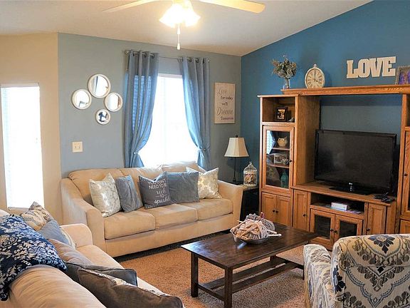 This ranch, 3 bedroom and 3 bath home has an open floor plan creating a grand space once you enter the home. The spacious master bedroom has a private master bath, walk-in closet and a private door leading to the back, covered deck. The kitchen has tons of cabinet space for storage and a nice island with eating bar! Downstairs is a huge, family room with an additional bedroom and full size bathroom. This home also backs up to a pasture with the added privacy of no homes directly behind it! You will not want to miss seeing this one!